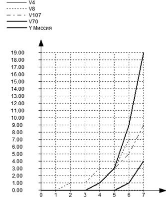 Вывод. Отрицательные действия высшего руководящего звена университета и неэффективные действия одного из элементов горизонтальной связи не могут быть компенсированы за счет положительных действий по горизонтальным связям. Миссия университета не выполняется.