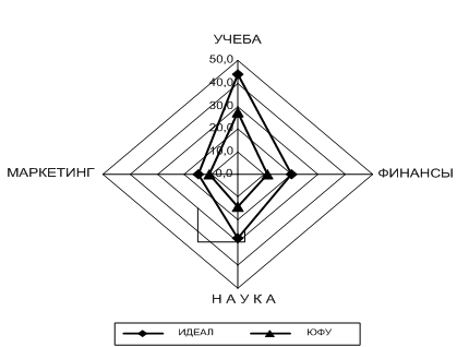 Пример отображения текущего и целевого состояния ЮФУ (2009 г.) (рис. 48.)