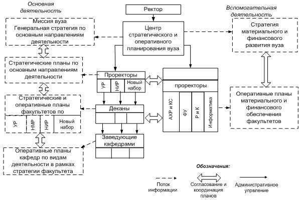 Рис. 51. Формирование стратегических и оперативных планов по уровням вуза