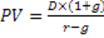 а) максимизация достояния акционеров. Величина богатства акционеров складывается из суммы полученного дивиденда и прироста курсовой стоимости акций. В условиях постоянного роста дивидендов цена акций (PV) определяется по формуле Гордона