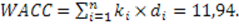 Показатель, характеризующий относительный уровень общей суммы расходов, связанных с использованием капитала, отражает цену авансированного капитала (WAСС). Этот показатель является индикатором минимума возврата на вложенный капитал и рассчитывается по формуле средней арифметической взвешенной