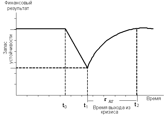 Для оценки устойчивости экономических систем в каждом отдельном случае используется комплекс тех или иных временных показателей. Однако в любом случае быстродействие системы (tRS на рис. 2.10) зависит от скорости самого медленного процесса активизации ресурсов в кризисном состоянии.