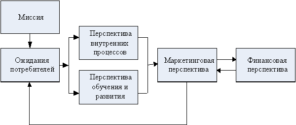 В качестве основополагающей перспективы выделяется маркетинговая, которая в свою очередь, формируется под воздействием как остальных перспектив, так и миссии вуза и ожиданий потребителей.