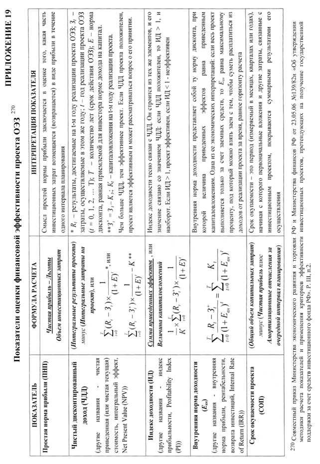 Приложение 19. Показатели оценки финансовой эффективности проекта ОЭЗ