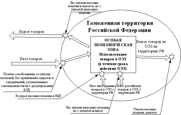 Территория особой экономической зоны - это зона таможенного контроля. Ввоз товаров на территорию и вывоз с территории зоны осуществляются с разрешения таможенных органов. Российские и иностранные товары, ввозимые участниками ОЭЗ, используются на территории экономической зоны в порядке и на условиях, которые установлены для таможенного режима свободной таможенной зоны.