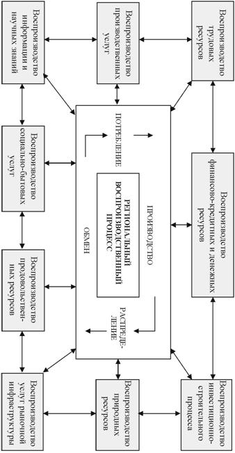 Таким образом, процесс регионального воспроизводства реализуется посредством хозяйственных связей региона как внутренних, так и внешних. Воспроизводственный подход предполагает комплексный анализ и управление структурными связями и отношениями в экономике региона, включая воспроизводство человеческого капитала, денежных, финансовых, природных и информационных ресурсов, отраслей региональной производственной и социальной инфраструктуры, обеспечиваемое посредством региональных рынков, опосредующих в настоящее время большую часть хозяйственных связей между субъектами регионального воспроизводства.