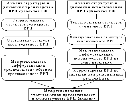 Согласно методологической схеме выполнения межрегиональных сопоставлений и динамических сравнений ВРП регионов РФ (см. рис.2.4) проведем анализ используемого ВРП.