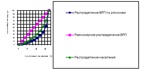Рис. 2.6. Кривые Лоренца по ВРП и населению в 2001г.