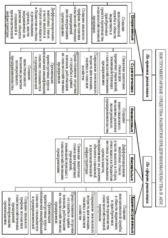 Административный механизм стимулирования развития предпринимательства в АПК заключается в упрощении процедур регистрации и сертификации, а также регламентации деятельности инспектирующих организаций. При этом органы местного самоуправления имеют возможность выйти с инициативой поддержки предпринимательских структур на региональный уровень власти. Инструментами развития сельскохозяйственного производства являются: