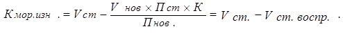 Профессор Захаров В. Г. еще в 1972 г. в книге «Особенности воспроизводства основных фондов в условиях НТП » (Изд. «Экономика». М. 1972) предложил для расчета морального износа, связанного с избыточными эксплуатационными затратами, следующую формулу: