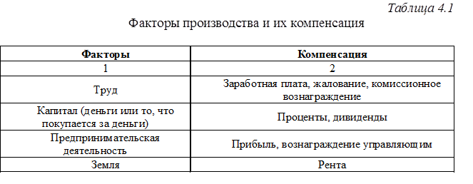 Рассмотрим этот принцип применительно к техническим устройствам предприятия. В процессе эксплуатации этих объектов задействованы производственные факторы, приведенные в Табл. 4.1, и показаны денежные компенсации за их использование.