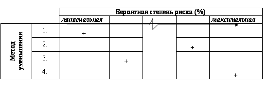 Значками «+» на каждой матрице будет отмечаться наиболее действенный способ преодоления (сокращения) риска при каждой предполагаемой вероятности его наступления. Причем узлы одного уровня могут либо быть независимыми, либо предполагать или взаимно исключать друг друга (если производим товар «А», значит, не производим товар «Б») – наиболее характерно для рисков категории «I», либо быть взаимозависимыми (если производим товар «А», то параллельно должны производить товар «Б»);