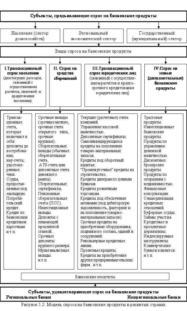 Помимо субъектов и факторов, важно обозначить основные виды спроса на банковские продукты: