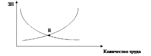 При прочих равных условиях чем выше плата, которую работники требуют за свой труд, тем меньшее их число согласятся нанять работодатели (закон спроса). И c другой стороны, чем выше предлагаемая работодателями за выполнение определенного вида работ плата, тем большее число людей готовы заниматься такого вида работами (закон предложения). На пересечении этик интересов и находится равновесная цена рабочей силы – та заработная плата, при которой число людей, готовых заниматься определенной работой, и число имеющихся рабочих мест совпадают.