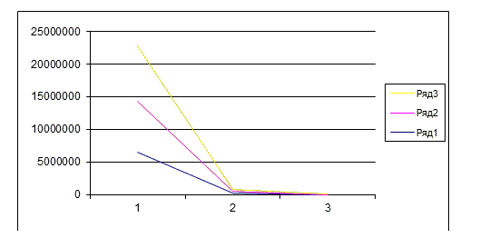 ряд 2 – объем экспортируемой продукции; ряд 3 – объем зарекламированной продукции