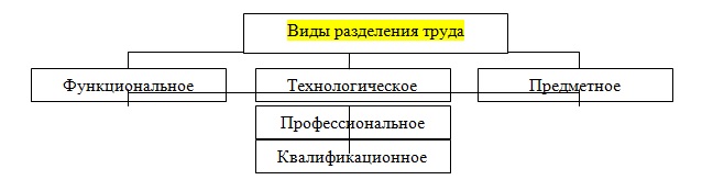 Организация труда на предприятии начинается с его разделения, которое, как элемент организации труда, представляет собой обособление видов деятельности работников, установление функций, обязанностей, сферы действия для каждого из них, а также для их групп, образующих разные подразделения.