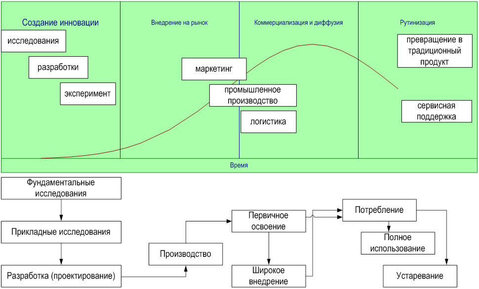 Эти принципы лежат в основе концепции жизненного цикла инноваций в совокупности с периодизацией инновационного процесса. Жизненный цикл инновации представляет собой определенный период времени, в течение которого инновация обладает активной жизненной силой и приносит производителю и/или продавцу прибыль или другую реальную выгоду.