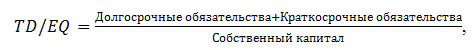 - Коэффициент финансового рычага, определяемый как соотношение заемного капитала к собственному капиталу (total debt to equity, TD/EQ).
