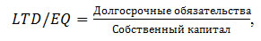 Некоторой разновидностью финансового рычага является соотношение долгосрочных обязательств к собственному капиталу (long term debt to equity, LTD/EQ).