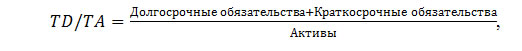 - Суммарные обязательства к активам (total debt to total assets, TD/TA) характеризуют ту долю активов, которая финансируется за счет заемных средств, независимо от источника формирования.