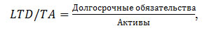 - Показатель «Долгосрочные обязательства к активам» (long term debt to total assets, LTD/TA) демонстрирует какая доля активов финансируется за счет долгосрочных обязательств.
