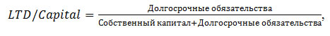 - Коэффициент долгосрочного привлечения заемных средств (long term debt to capital, LTD/Capital), рассчитываемый как отношение долгосрочных обязательств к перманентному капиталу.