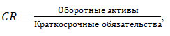 - Коэффициент текущей ликвидности (current ratio, CR), характеризующий способность компании погасить краткосрочные обязательства за счет оборотных (текущих) активов.