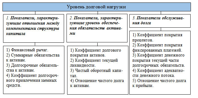 Обобщая существующую систему показателей, характеризующих уровень долговой нагрузки компаний, можно условно выделить три основных группы показателей [105;155;165;189;206]: