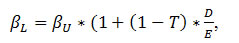 Где βL – коэффициент бета собственного капитала компании с учетом долгового бремени;
