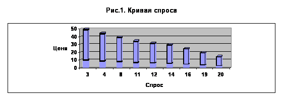 Зависимость спроса от цены - это зависимость четвертого столбца от второго. Табл.1 дает нам девять точек такой зависимости. Зависимость можно представить на рисунке, в координатах «спрос – цена». Если абсцисса - это спрос, а ордината - цена, то девять точек на кривой спроса, перечисленные в порядке возрастания абсциссы, имеют вид: