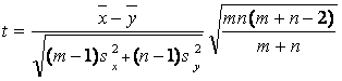 Если bmn¹1, то распределение статистики t отличается от распределения, заданного формулой (2), полученной в предположении равенства дисперсий. Когда bmn=1? В двух случаях - при m = n и при D(X) = D(Y). Таким образом, при больших и равных объемах выборок требовать выполнения условия б) нет необходимости. Кроме того, ясно, что если объемы выборок мало различаются, то bmn близко к 1. Так, для данных [8] имеем b*mn= 0,987, где b*mn - оценка bmn, полученная заменой в формуле (5) теоретических дисперсий на выборочные.