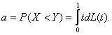 Введем некоторые обозначения. Пусть F-1(t) - функция, обратная к функции распределения F(x). Она определена на отрезке [0;1]. Положим L(t) = G(F-1(t)). Поскольку F(x) непрерывна и строго возрастает, то F-1(t) и L(t) обладают теми же свойствами. Важную роль в дальнейшем изложении будет играть величина a = P(X< Y) . Как нетрудно показать,