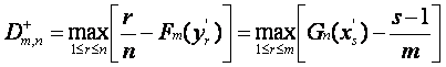 где x'1<x'2<…<x'm - элементы первой выборки x1,x2,…,xm , переставленные в порядке возрастания, а y'1<y'2<…<y'n - элементы второй выборки y1,y2,…,yn , также переставленные в порядке возрастания.