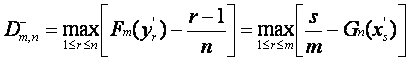сравнивают с соответствующим критическим значением (см., например, [8]) и по результатам сравнения принимают или отклоняют гипотезу Н0 о совпадении (однородности) функций распределения. Практически значение статистики Dm,п рекомендуется согласно монографии [8] вычислять по формулам