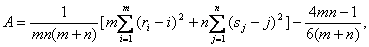 где ri - ранг x'i и sj - ранг y'j в общем вариационном ряду, построенном по объединенной выборке.