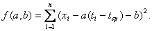 Как известно, метод наименьших квадратов был разработан великим немецким математиком К. Гауссом в 1794 г. Согласно этому методу для расчета наилучшей функции, приближающей линейным образом зависимость x от t, следует рассмотреть функцию двух переменных