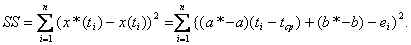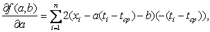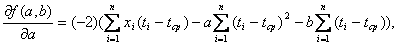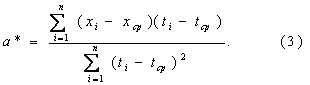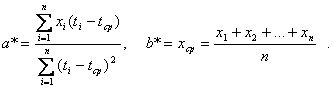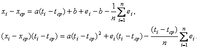 xk = a (tk - tср)+ b + ek , k = 1,2,…,n,