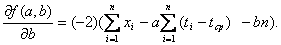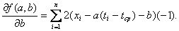 Оценки метода наименьших квадратов - это такие значения a* и b*, при которых функция f(a,b) достигает минимума по всем значениям аргументов. Чтобы найти эти оценки, надо вычислить частные производные от функции f(a,b) по аргументам a и b, приравнять их 0, затем из полученных уравнений найти оценки: Имеем: