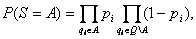 где суммирование идет по всем подмножествам A множества Q, содержащим q. Пусть Q={q1, q2,…,qk}. Рассмотрим случайные величины, определяемые по случайному множеству S следующим образом