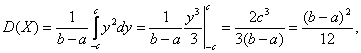 Пример 6. Для равномерно распределенной случайной величины Х найдем дисперсию, среднеквадратическое отклонение и коэффициент вариации. Дисперсия равна: