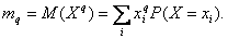 При обработке данных используют такие характеристики случайной величины Х как моменты порядка q, т.е. математические ожидания случайной величины Xq, q = 1, 2, … Так, само математическое ожидание – это момент порядка 1. Для дискретной случайной величины момент порядка q может быть рассчитан как