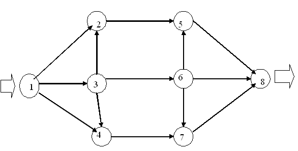 Рис.9. Транспортная сеть к задаче о максимальном потоке.