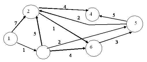 Исходные данные здесь - это граф, дугам которого приписаны положительные числа - затраты на проезд или время, необходимое для продвижения из одной вершины в другую. В общем случае граф является ориентированным, и каждые две вершины соединяют две дуги - туда и обратно. Действительно, если пункт А расположен на горе, а пункт Б - в низине, то время на проезд из А в Б, очевидно, меньше времени на обратный проезд из Б в А.
