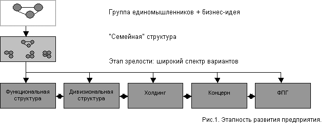 На практике переход предприятия на очередной этап развития сопровождается шлейфом нерешенных в свое время задач, что сохраняет, например, в финансово-промышленной группе черты "семейной" структуры и значительно снижает эффективность бизнеса.