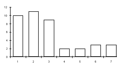 Пятая строка табл.5 задает функцию принадлежности нечеткого множества, выражающего понятие "богатый человек" в терминах его ежемесячного дохода. Это нечеткое множество является подмножеством множества из 9 интервалов, заданных в строке 2 табл.5. Или множества из 9 условных номеров {0, 1, 2, …, 8}. Эмпирическая функция распределения, построенная по выборке из ответов 74 опрошенных на первый вопрос мини-анкеты, описывает понятие "богатый человек" как нечеткое подмножество положительной полуоси.