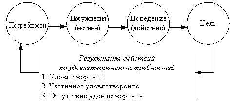 Процесс мотивации (рис.4) начинается с физиологической или психологической нехватки, или потребности, которая активизирует поведение или создает побуждение (мотив), направленное на достижение определенной цели или вознаграждения. Потребности создают побуждения, нацеленные на получение вознаграждения, в чем и заключена основа мотивации.