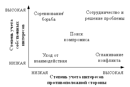 В случае возникновения конфликтной ситуации люди реагируют на нее по-разному. Основные стратегии поведения в конфликте представлены на рис. 20.
