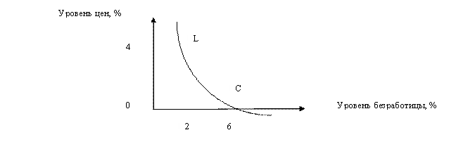 В 60-е гг. XX в. ее рассматривали как набор альтернативных вариантов проведения экономической политики. Сторонники либерального направления советовали выбрать точку L, в которой полная занятость и процветание экономики достигаются ценой умеренной инфляции.
