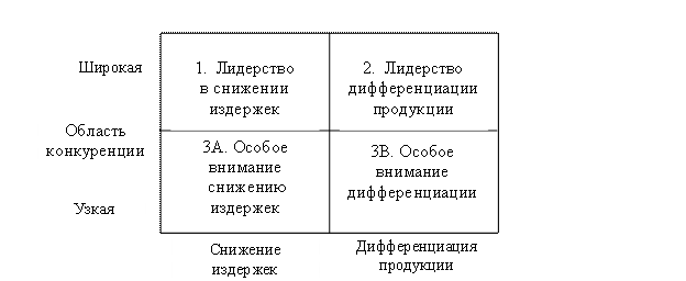 Существуют только два пути достижения оптимального функционирования: либо вы становитесь в своей отрасли производителем с самым низким уровнем себестоимости, либо дифференцируете свою продукцию/услуги в тех направлениях, которые ценятся покупателем до такой степени, что он заплатит наивысшую цену, чтобы получить их. Фирмы могут выбирать, применять ли им эти стратегии на широком рынке или же на узком сегменте рынка, где сфокусирована их деятельность.