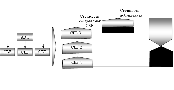 Стоимость диверсифицированной корпорации формируется за счет стоимостей находящихся в ее портфеле бизнес-единиц, а также корпоративного центра (рис. 1.4).